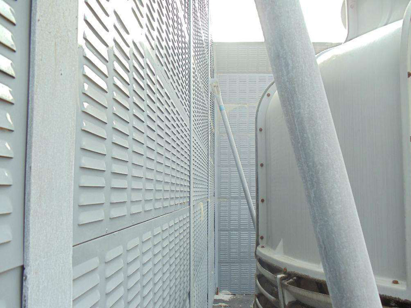 冷卻塔聲屏障聲屏障采用混合型聲屏障,頂部為吸聲單元,以下部分為隔聲單元。合理斷定聲屏障的長度和高度后,可獲得10-25dB(A)的降噪量。
