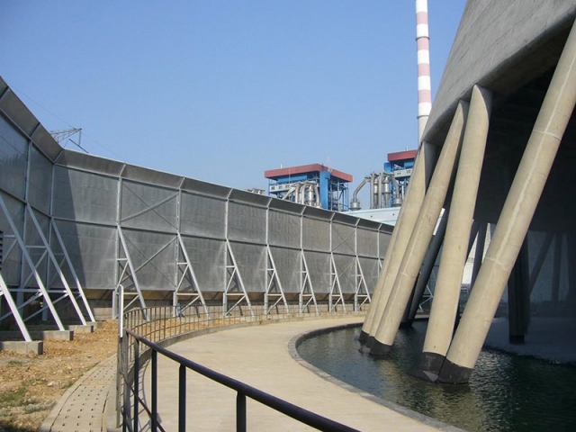 冷卻塔聲屏障采用混合型聲屏障,頂部為吸聲單元,以下部分為隔聲單元。合理確定聲屏障的長度和高度后,可獲得10-25dB(A)的降噪量。