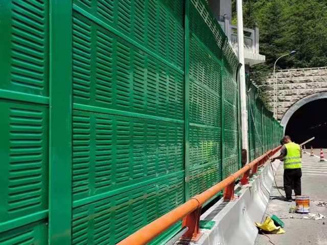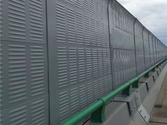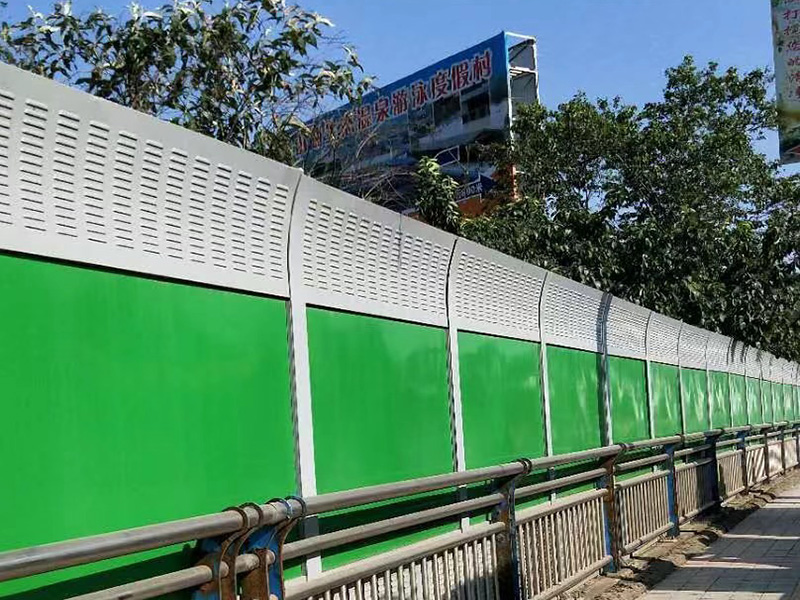 橋梁聲屏障是以吸聲材料為芯材,采用彩鋼夾芯板聲學構件組裝成的吸、隔聲屏障。彩鋼聲屏障吸聲型聲學構件可加工成百頁窗式、穿孔式、微穿孔式和開槽孔式等若干種吸、隔聲型聲學單元。百葉窗和穿孔的吸聲彩鋼復合板中、高頻隔聲性能較好,不開槽孔的彩鋼復合板聲學構件對中、低頻隔聲性能較好。因此可根據(jù)噪聲特點選用不同結構形式的聲屏障。